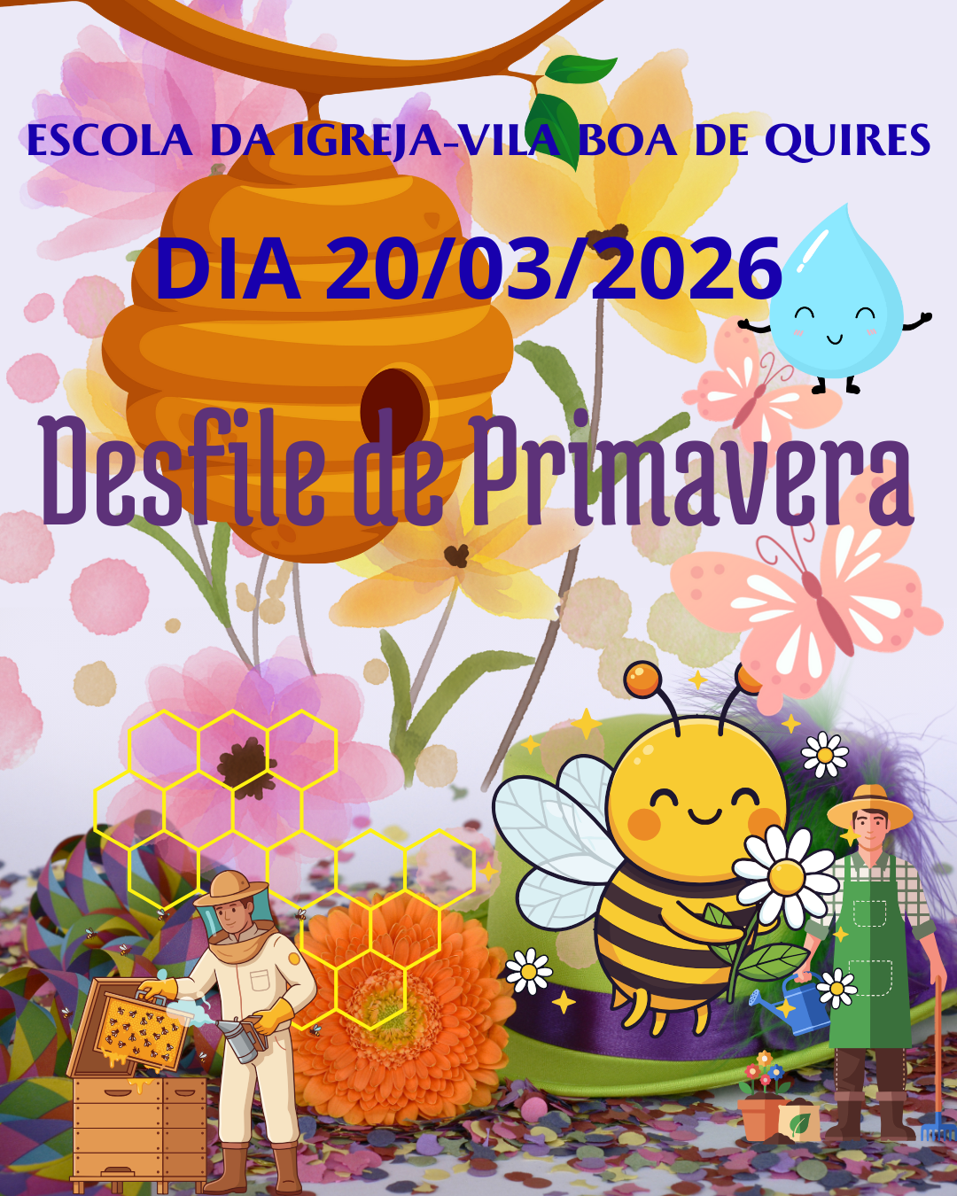 No entanto, em substituição ao desfile de Carnaval, anunciaremos um Desfile Temático, intitulado "Desfile de Primavera". Este evento abordará temas como abelhas, borboletas e sustentabilidade, ressaltando a importância da proteção da natureza e do meio ambiente. Temos o prazer de agendar este desfile para o dia 20 de março de 2026 (sexta-feira), data que marca o início da primavera.